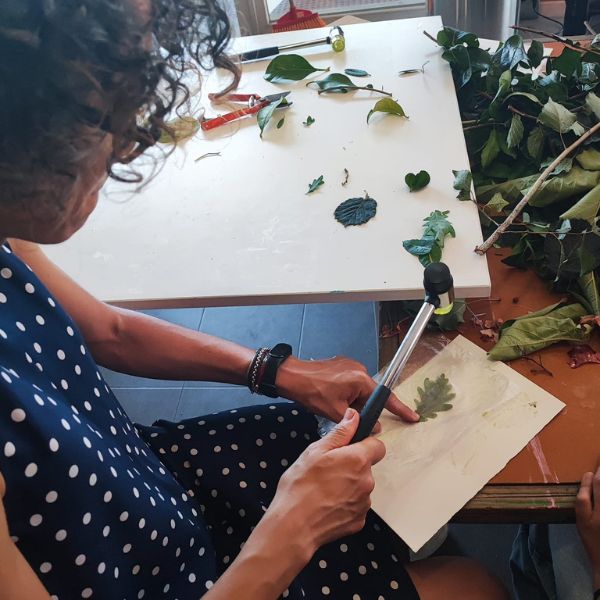 Duas oficinas de impressão botânica em papel: Conduzidas pela professora Célia Ferreira.