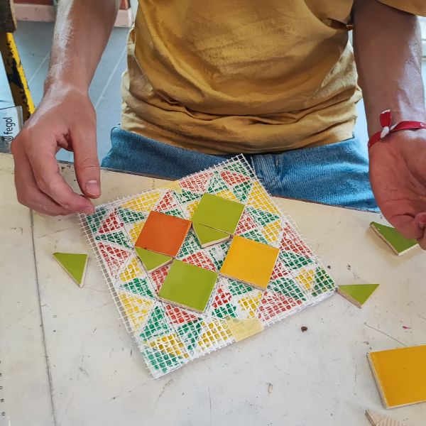 Duas oficinas de mosaico com cerâmica em cacos: Conduzidas pelo professor António Salvador Soares.