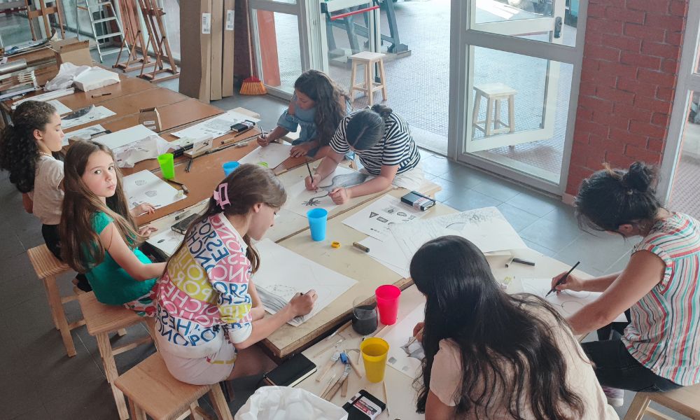 A oficina pode incluir tanto pintura em tela quanto em outros suportes, incentivando a criatividade e a experimentação.