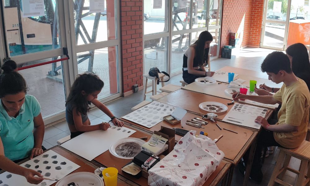 A oficina pode incluir tanto pintura em tela quanto em outros suportes, incentivando a criatividade e a experimentação.