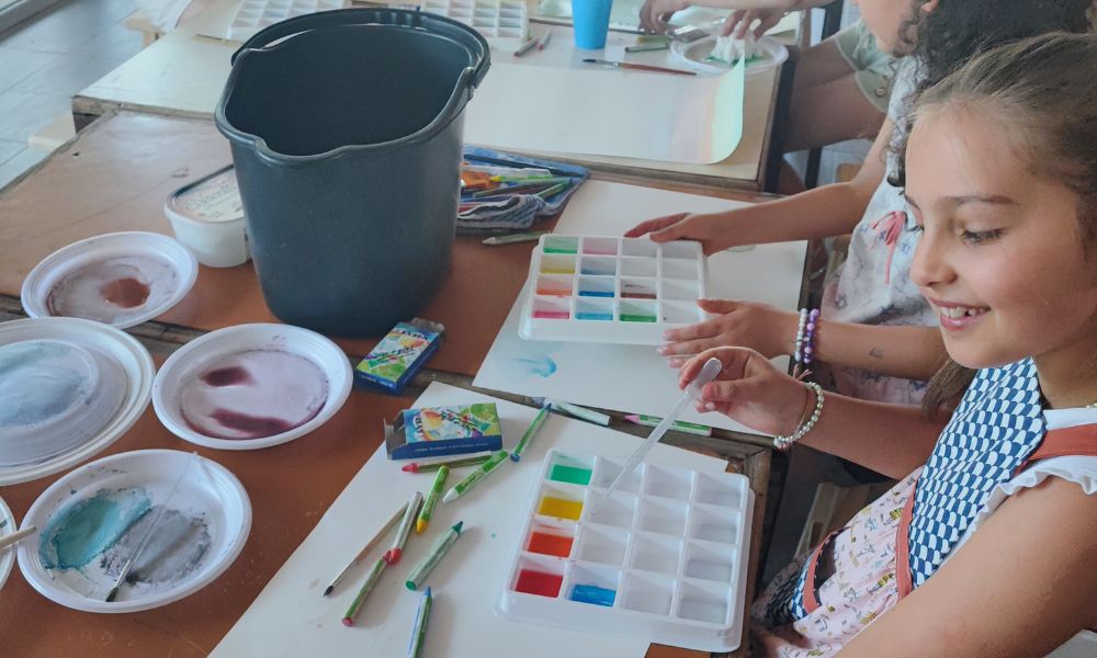 A oficina pode incluir tanto pintura em tela quanto em outros suportes, incentivando a criatividade e a experimentação.