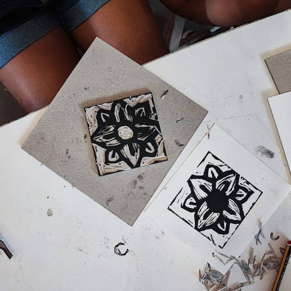 Uma oficina de design e estampagem por gravura: Realizada pelo Professor Escultor Vítor Resende, esta oficina permitiu aos participantes explorar técnicas de gravura e estampagem, criando designs únicos que foram transferidos para diferentes superfícies.